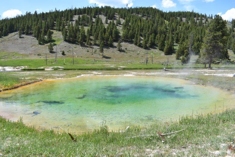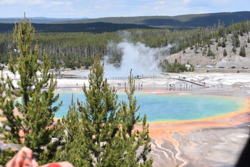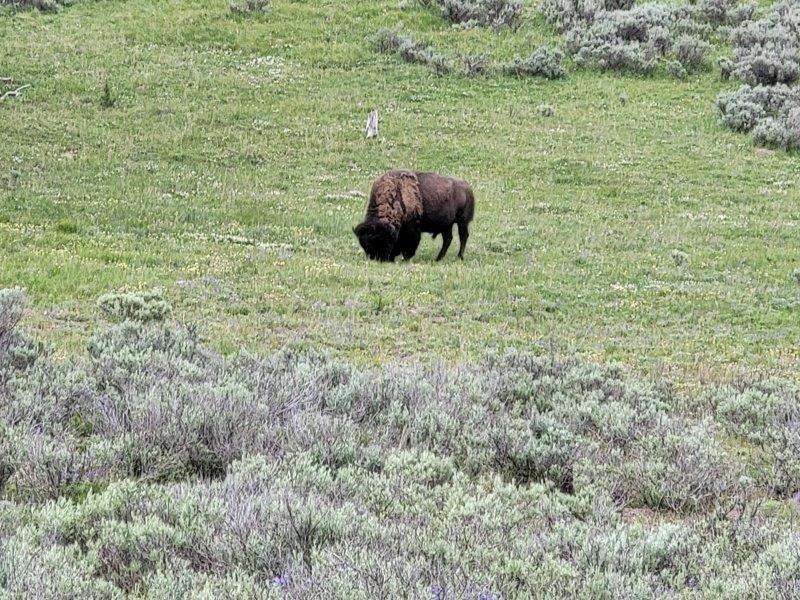 Then we visited Yellowstone National Park, where we met up with my brother and sister-in-law, Kevin and Angie, and their family. We all stayed at the Fishing Bridge campground for a few days, mostly enjoying a visit far from our home bases in NC. It was cold, overcast, rainy, and snowy for mid-June, so our explorations were kept to a minimum. Carl and I then moved to West Yellowstone, and our primary goal was to drive into Yellowstone to see the Grand Prismatic Spring from an overlook. There was a lot of traffic in Yellowstone, and I wish the powers-that-be would institute some kind of controls on the more popular locations. There were long lines of traffic just waiting to park to visit the lower section of the Grand Prismatic Spring area. I think timed entry might be beneficial at some of these spots, and it wouldn’t surprise me if they institute a shuttle bus system to these more popular locations.