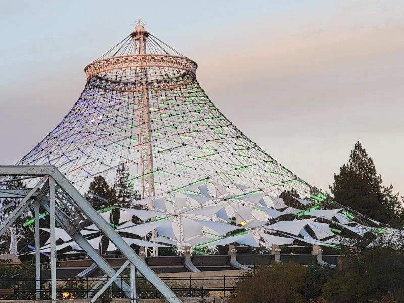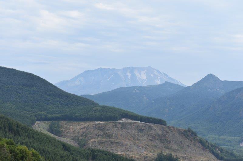We finally arrived in Washington, where we visited our niece and her family, as well as Carl’s sister and her husband. We witnessed our first wildfire, which started behind our niece’s house (it was several miles away, so they were safe!). Our niece and her husband treated us to a trip to downtown Spokane for dinner one evening, and we enjoyed our walk along the river that flows through it with reminders of the World Fair that took place there in 1974. We also spent Carl’s birthday exploring the Mount St. Helens area, visiting various information centers and museums that featured exhibits about the 1980 eruption. This is one of the most active volcanoes in the U.S.