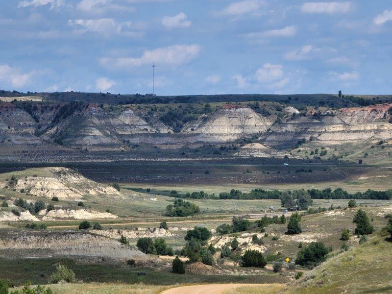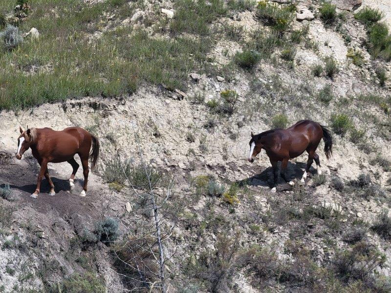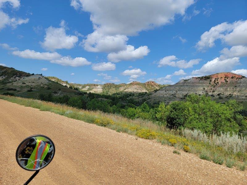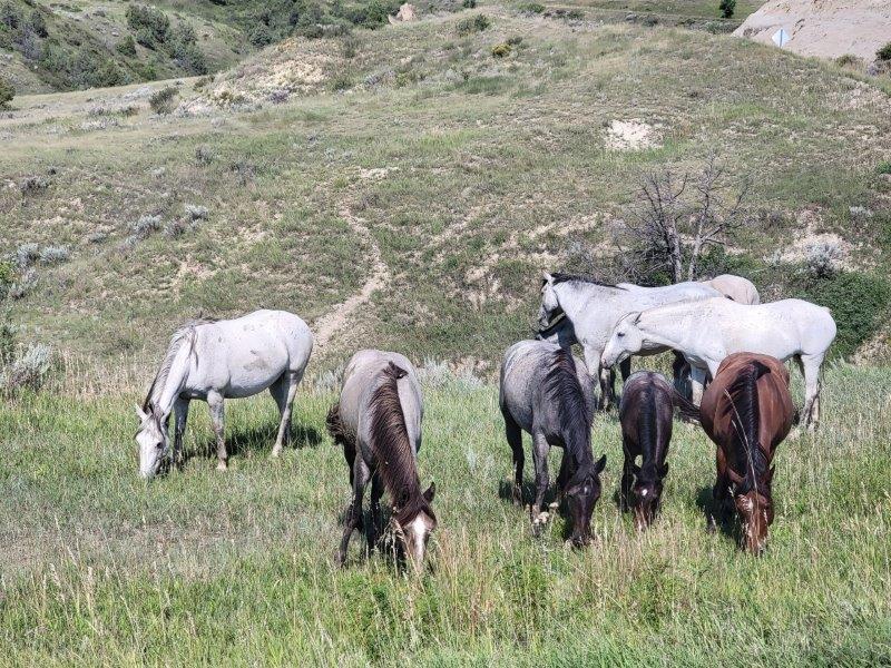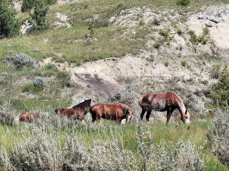 In North Dakota, we revisited one of our favorite boondocking sites. It is called Scoria Pit Dispersed Camping, outside of Medora. We shared a large area with Ginger, a new friend who outfitted a box truck to travel full-time. We also took a fun motorbike ride into Theodore Roosevelt National Park and saw several groups of wild horses! Just a reminder, folks, DO NOT FEED wild animals of any kind. We witnessed a middle-school-age boy walking toward some wild horses, and he threw a wedge of apple to one, scaring the horse! Luckily, the horse ignored the piece of apple and quickly skittered away from the boy, but it could have turned out differently if the horse felt it was being attacked.
